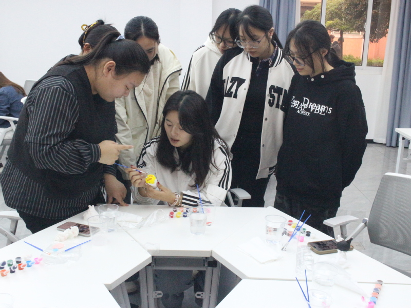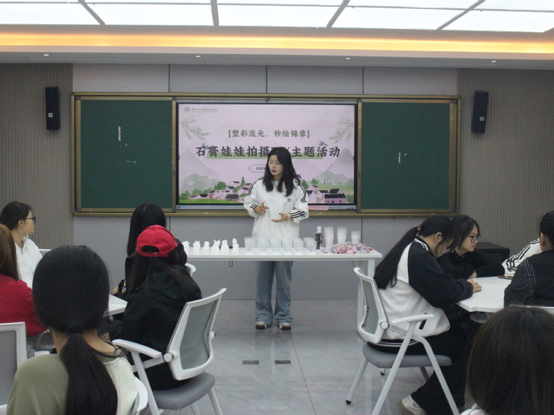 活动现场,社团负责人郑雅之讲解了创作规则、流程及材料使用注意事项,并展示了色彩鲜活、造型灵动的石膏娃娃成品范例,点燃了同学们的创作热情。
