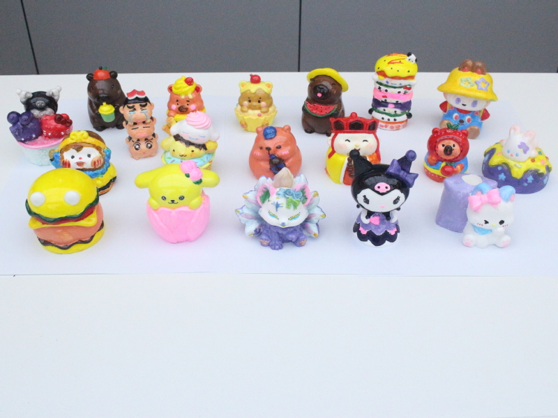创作阶段,同学们领取石膏白模、颜料与画笔,自由发挥创意。有人用色彩勾勒出卡通形象的活泼质感,有人用细腻笔触晕染出梦幻氛围,摄影爱好者们则同步围绕作品调试光影、构思构图,尝试用镜头捕捉石膏娃娃的静态美感与创作故事。作品完成后,形态各异的石膏娃娃集中展示在活动现场,同学们依次分享创作思路——从配色灵感的来源到造型细节的巧思,从摄影构图的设计到光影情绪的表达,每一件作品都承载着独特的巧思。现场通过线上线下结合的方式投票,评选出“最美摄影娃娃”,让创意与审美在交流中碰撞出更多火花。