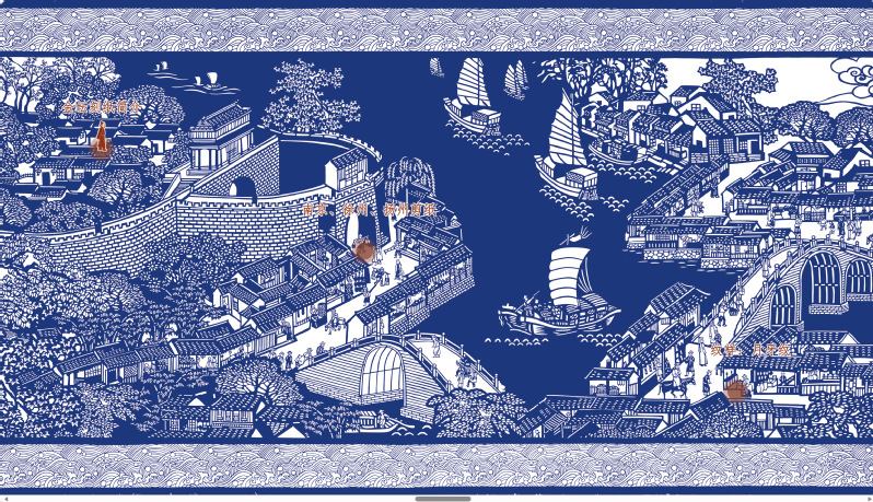 在金坛刻纸数字体验现场,观众只需轻触屏幕,原本静态的百米刻纸长卷《大运河》瞬间苏醒:纤夫开始拉纤,商旅沿河而行,整幅运河画卷在交互屏上焕发出全新生命力。更令人惊叹的是,学生们可以通过手指在屏幕上自由勾勒路径,让刻纸人物沿着设定的路线行走,仿佛穿越时空重演千年运河故事。
