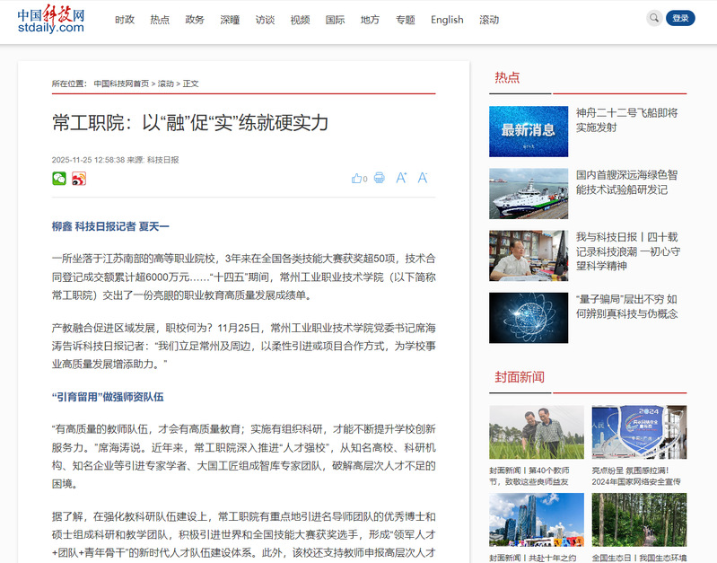 中国科技网:常工职院:以“融”促“实”练就硬实力