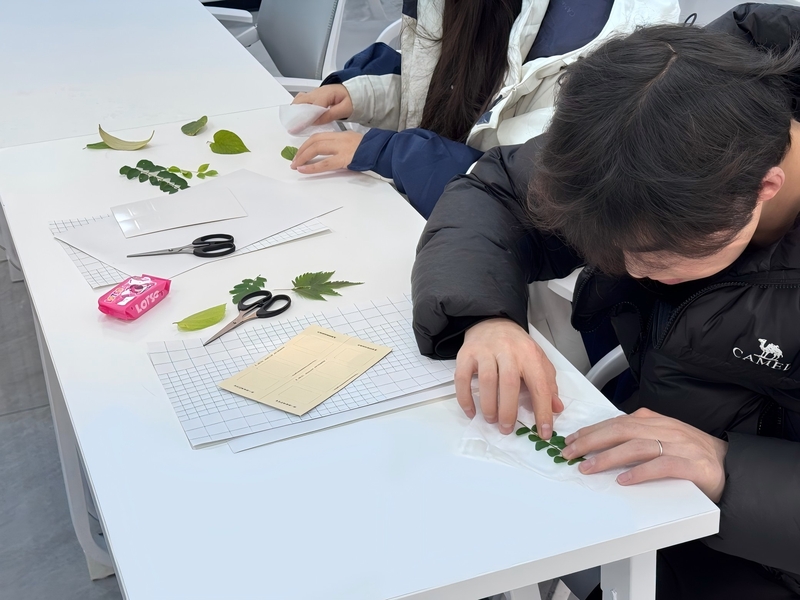 活动通过“树木资源”主题科普分享,带领大家认识植物多样性,理解树木资源在生态系统中的重要作用。现场气氛活跃,同学们以落叶与枯枝为素材,动手DIY“落红书签”——将不同形态的叶片拼贴组合,并配以诗意短句,将自然之美定格于方寸书页之间。从素材的精心挑选到书签的最终封装,大家在实践中亲近自然、感悟自然,深化了对“低碳利用自然物”理念的理解,不少作品展现了独特的美学视角与巧妙构思。同学们表示,此次活动以趣味手工为载体,一改传统环保宣传的单一模式,不仅提升了创造力和动手能力,更让环保理念以生动可感的方式融入日常生活。