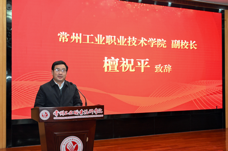 檀祝平致欢迎辞。他指出,学校始终以服务地方经济发展为己任,2023年,由我校和万帮数字能源股份有限公司牵头,联合普通本科院校、高职院校、政府部门、企业、科研机构等181家单位成功组建了国家级常州新能源产教联合体。重点开展人才培养、科技研发、创新创业等服务,深度打造新能源汽车“制造+服务”全产业链人才培养新生态。他表示,中国人保财险订单班的开班,是产教联合体开展人才培养的重要一环,校企双方将以“互利共赢、合作共赢”为原则,携手同行,共同打造校企合作示范组合和产教深度融合共同体典范,为区域经济发展不断提供人才保障和智力支持。