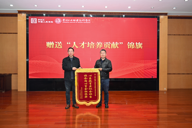 会上,蒋正炎向企业赠送了“人才培养贡献”锦旗。产学研合作处处长褚守云为人保财险业务骨干陈丽、高兆丽、饶佳旺(我校金融服务与管理专业2024届校友)颁发企业导师聘书。