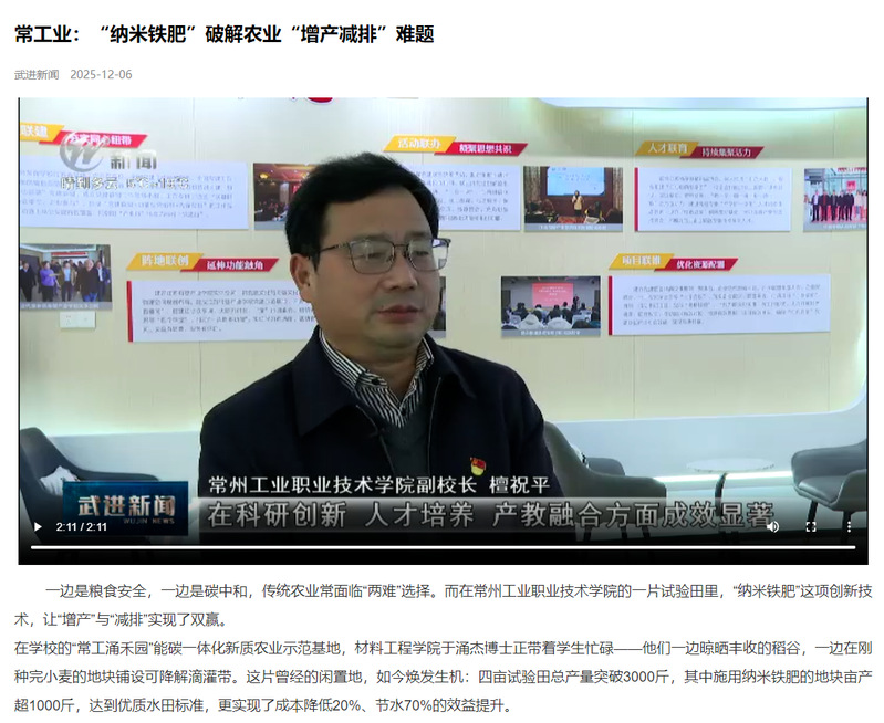 武进新闻:常工业:“纳米铁肥”破解农业“增产减排”难题