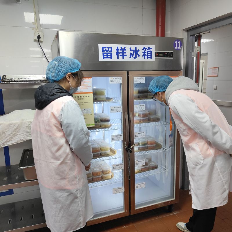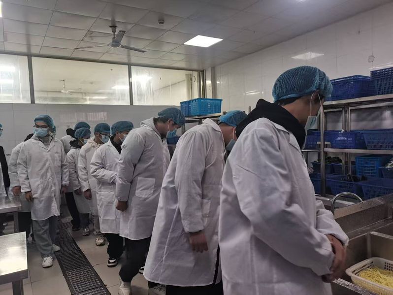 活动现场,在后勤与基建管理处负责人、食堂管理人员及各食堂现场负责人的带领下,参与代表们严格遵守食堂卫生管理要求,佩戴一次性口罩、头套有序进入食材储存间、清洗消毒区、烹饪加工间、备餐间及食品留样柜等核心区域。食堂现场负责人逐一介绍了从业人员健康管理、食材采购的“溯源体系”、餐具洗消流程等环节;重点讲解了食品留样的规范标准,确保食品安全可追溯。分类存放的食材、整洁有序的操作台面、规范佩戴的工作人员工装,让代表们对校园餐饮的标准化管理有了直观认知。
