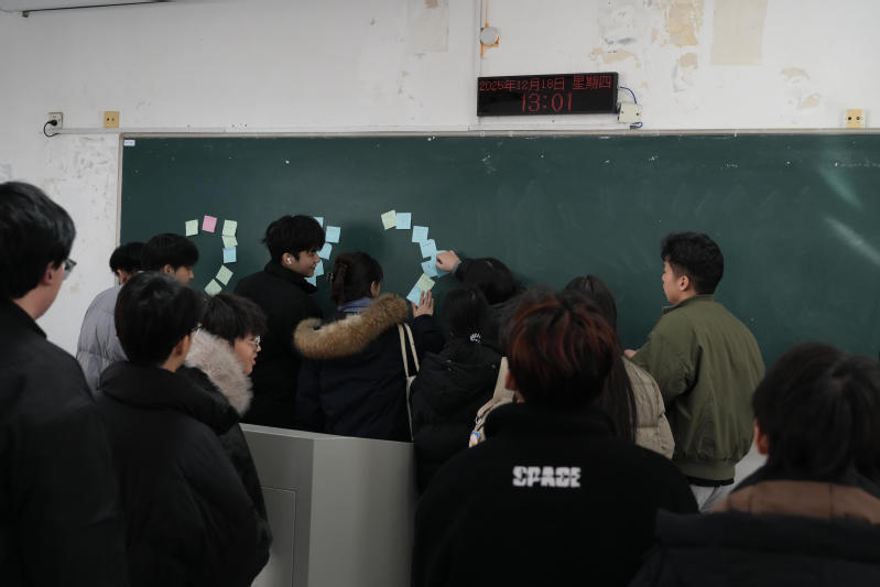 心愿传递点亮未来愿景。在温馨活泼的氛围中,同学们在便利贴上认真书写下2026年的学习目标、成长期待和美好祝愿。随后,一张张满载梦想的贴纸在黑板上共同拼贴出“2026”字样。活动将眼前的期末动员与未来的长远规划相连接,激发了学生的进取心与规划意识。