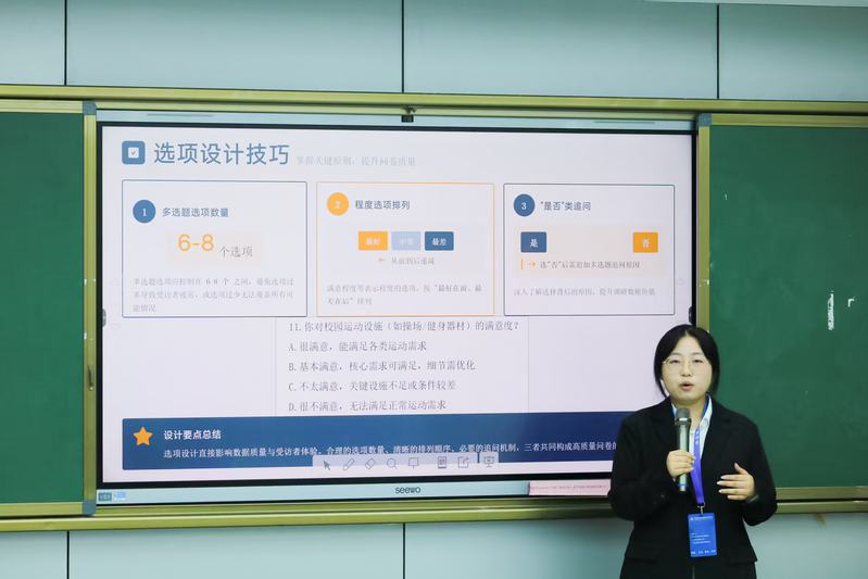 仪式结束后,团队随即开展了专项技能培训。主讲人郭时雨、刘静恩系统讲解了调研主题确立、问卷设计、数据分析及报告撰写的完整流程,并结合实例演练与现场答疑,有效提升了成员的实际工作能力。