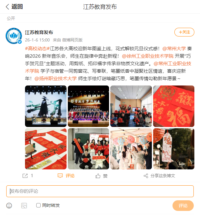 江苏教育发布:#高校动态#江苏各大高校迎新年图鉴上线,花式解锁元旦仪式感