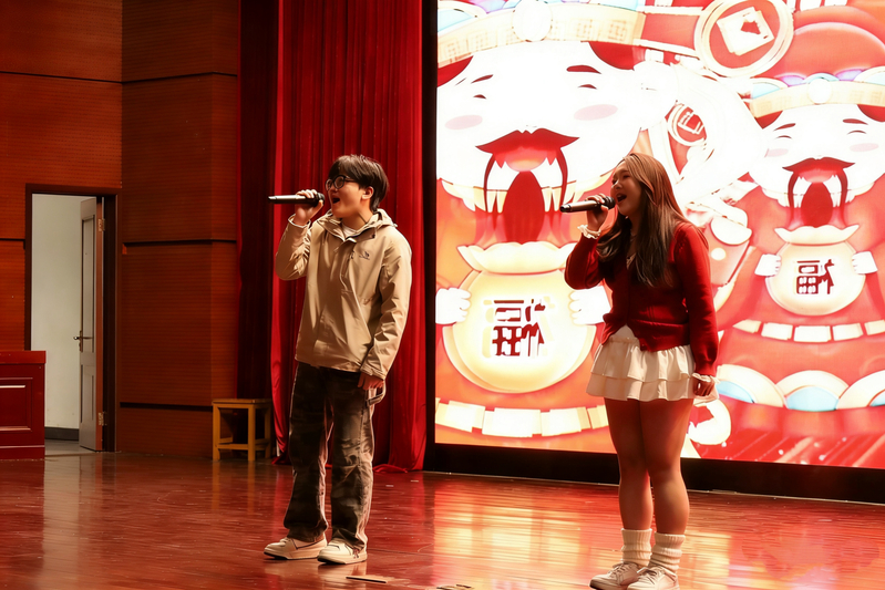 活动现场,各班级围绕“水韵江苏”主题,分别从“水韵江苏·薪火传情”“水韵江苏·声动芳华”“水韵江苏·同心筑梦”三大篇章出发,以情景剧、导游词讲解、非遗展示、民俗表演等多元形式进行专业风采展示。此外,活动还设置了“红色文旅知识问答”“新春祝福盲盒”等互动环节,将党史知识、江苏文旅常识与新春氛围相结合,现场气氛热烈活跃,展现了新时代文旅青年对“水韵江苏”文化基因的创造性转化与创新性表达。