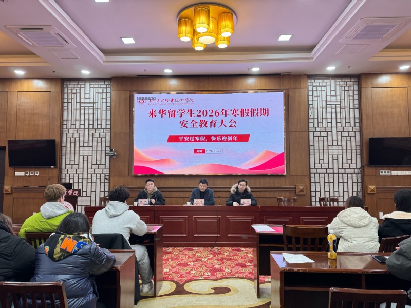 1月20日,我校召开来华留学生2026年寒假安全教育大会。国际与港澳台事务处、海外教育学院(合署)处长张书贵出席会议并讲话,全体辅导员、班主任及来华留学生参加了会议。