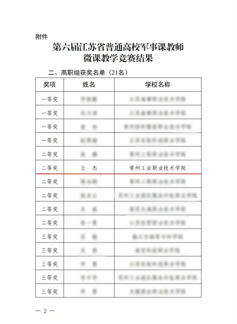 在第六届江苏省普通高校军事课教师微课教学竞赛中,我校旅游与康养学院辅导员、军事课骨干教师王杰荣获二等奖。本次竞赛分为初赛视频评审和决赛现场授课两个阶段,竞争激烈,共有来自全省高校的132件作品参与初赛,45名教师进入现场决赛。王杰老师凭借扎实的军事理论素养、精心的教学设计和稳定的现场发挥,获得评委认可。