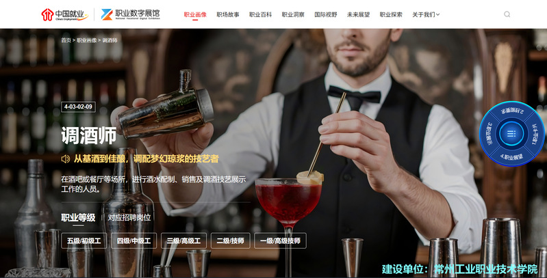 据悉,人力资源社会保障部中国就业培训技术指导中心启动国家级职业数字展馆建设项目,旨在依托《中华人民共和国职业分类大典(2022年版)》,以数字化手段全景式、立体化呈现职业内涵,破解人才供需匹配难题,为劳动者提供精准职业导航。在江苏省首批11个国家级职业数字展馆建设项目中,我校凭借在现代服务业人才培养领域的深厚积淀与创新实践,成功承接调酒师职业数字画像建设任务,成为全省唯一承担现代服务职业画像的建设单位,为全国职业数字化转型贡献了“常工业力量”。