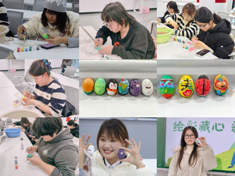 绘彩藏心,彩蛋寄情——画彩蛋。活动现场,在轻松舒缓的氛围中,同学们排排坐在一起,拿起画笔,或勾勒春日的生机盎然,或描绘心中的美好期许,或点缀寓意吉祥的图案,每一笔涂抹都凝聚着专注与热爱,每一枚彩蛋都承载着情绪与祝福。大家屏息凝神,在方寸蛋壳上肆意挥洒灵感,将学业的疲惫、生活的小烦恼都融入色彩之中,在创作的专注里获得心灵的平静。