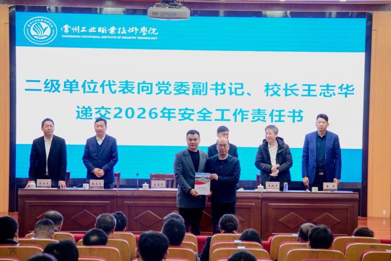 职能部门和二级学院负责人代表向王志华递交了2026年度安全工作责任书,进一步明晰了各方主体的安全职责,构建起“横向到边、纵向到底”的责任体系。随后,相关代表进行了表态发言,表明了扎实做好安全工作的决心和态度,也为全体参会人员树立了履职尽责的鲜明导向。