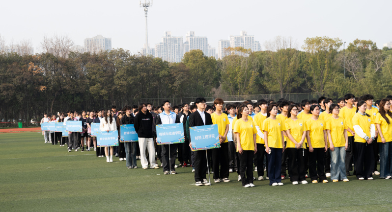 伴随着激昂的乐曲,各二级学院代表队依次入场。材料工程学院、机械与交通学院、智能控制学院、数字商务学院、信息工程学院、旅游与康养学院、艺术创意学院、邓建军工匠学院、通识教育与体育学院、海外教育学院等十支代表队步伐矫健、精神饱满,展现出常工业学子朝气蓬勃的青春风貌。