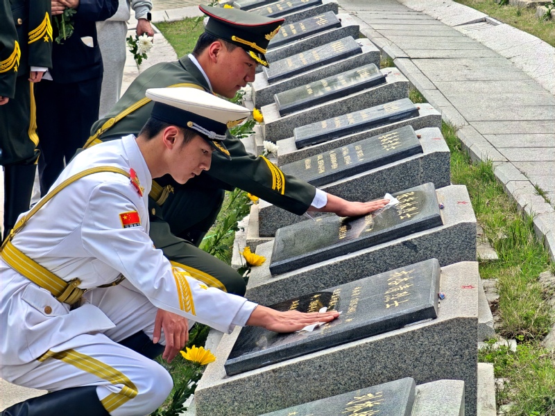 退役大学生代表倪扬同学在吊唁中表示:“今天的山河无恙、岁月静好,是无数先烈用鲜血和生命换来的。他们用坚定的信仰、无畏的勇气,筑起了民族的脊梁,为我们留下了宝贵的精神财富,这是我们前行路上永远的精神丰碑。”