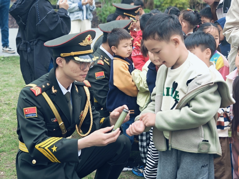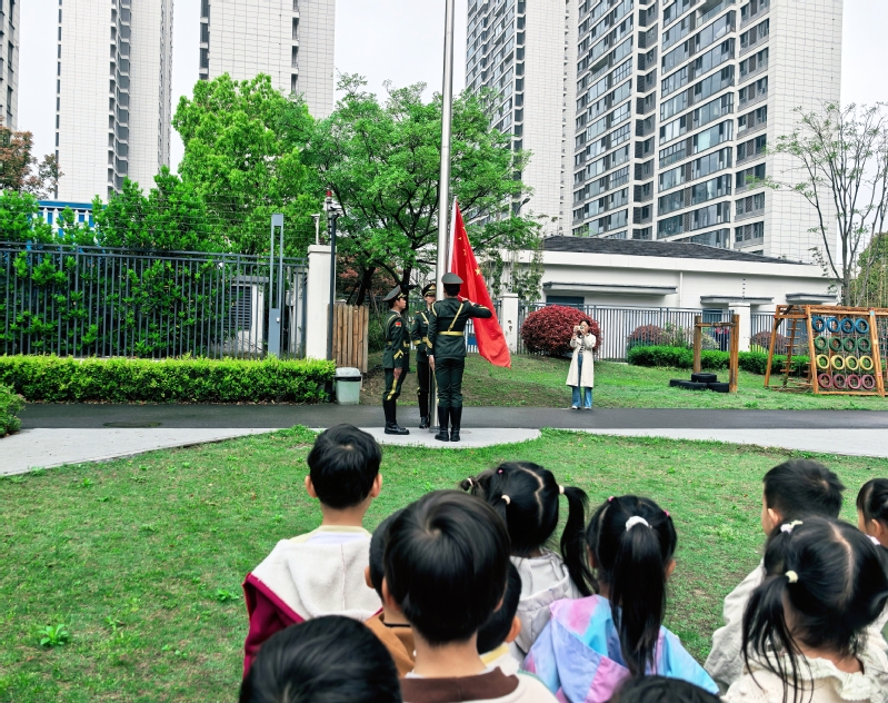 国防启蒙,共育童心筑基石。学校国旗护卫队和退役大学生士兵代表走进银河云峯幼儿园,开展国防启蒙教育活动。活动在庄严的升国旗仪式中拉开序幕,护卫队员步伐铿锵、英姿飒爽,为小朋友们上了一堂生动的爱国主义体验课。随后,退役士兵以海陆空国防模型为教具,用通俗易懂的语言讲解装备性能与国防意义,在“看、听、触、问”的互动中,将维护国家安全的种子播撒进幼儿心田。
