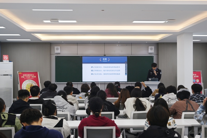 警校联动,共织网络安全“防护网”。学院邀请常州市公安局武进分局网安大队民警进校开展网络安全专题活动。在学生社区,民警与志愿者通过宣传展板、趣味问答和宣传资料发放等方式,向师生普及国家安全法与网络安全法。大讲堂上,网安民警聚焦电信诈骗、数据泄露、网络谣言等热点,以案释法剖析网络风险,传授防范技巧。活动有力提升了青年学子对网络空间风险的辨别与应对能力,营造了清朗健康的校园网络氛围。